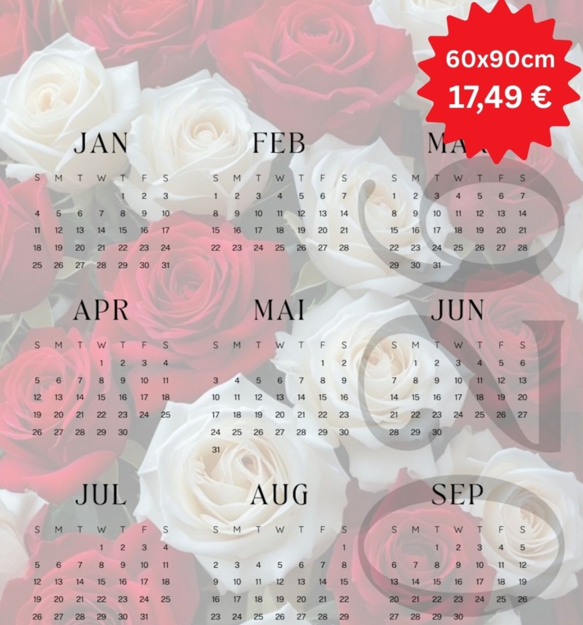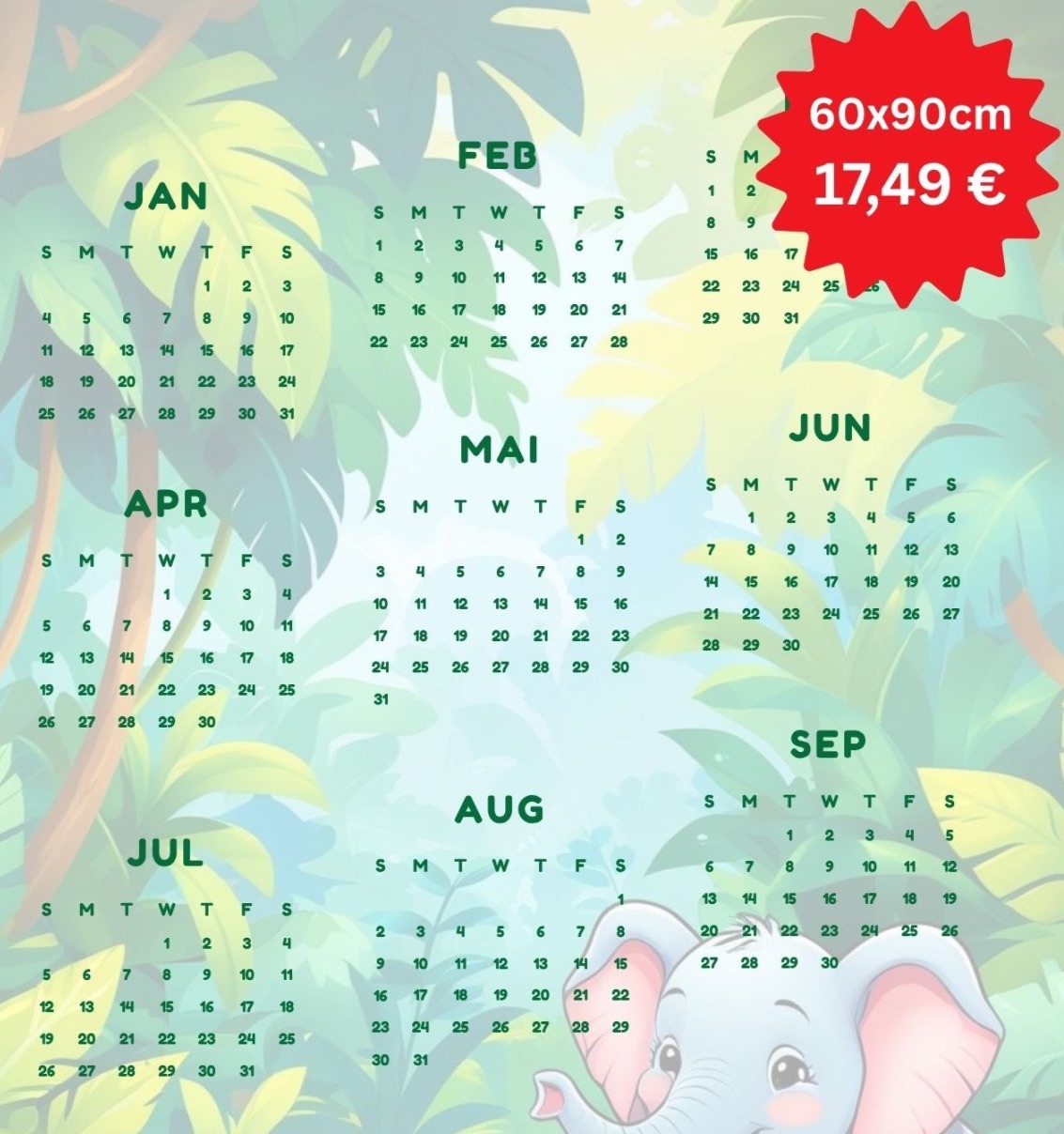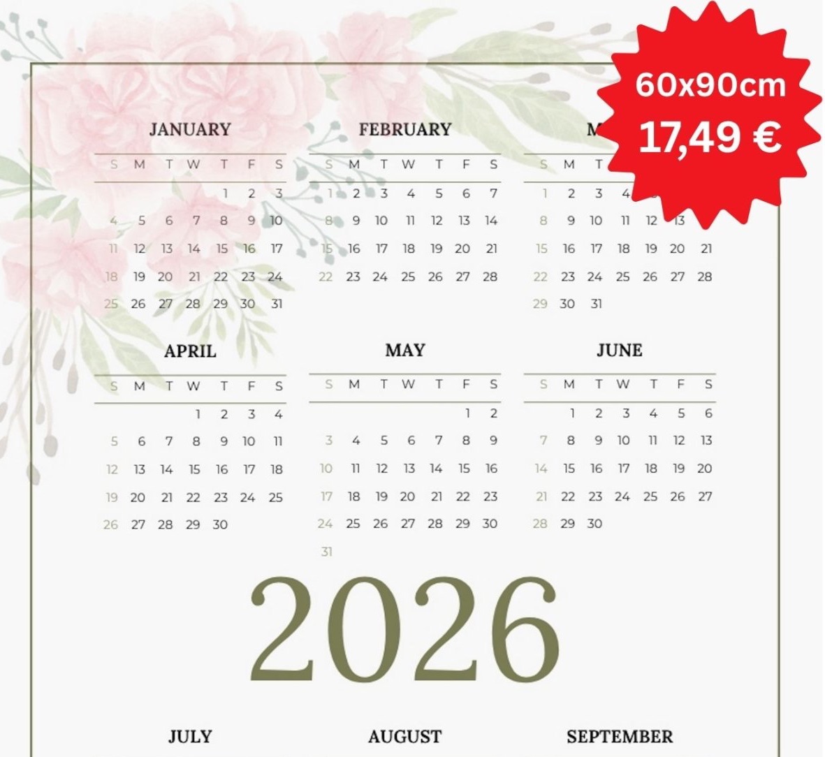 Alle Wandkalender sind jeweils in A5, A4 und A3 verfügbar, mit verschiedenen Papierarten zur Auswahl.Die Preise in den Abbildungen gehören zur jeweils angegebenen Größe und ändern sich je nach ausgewählter Größe und Papierart.